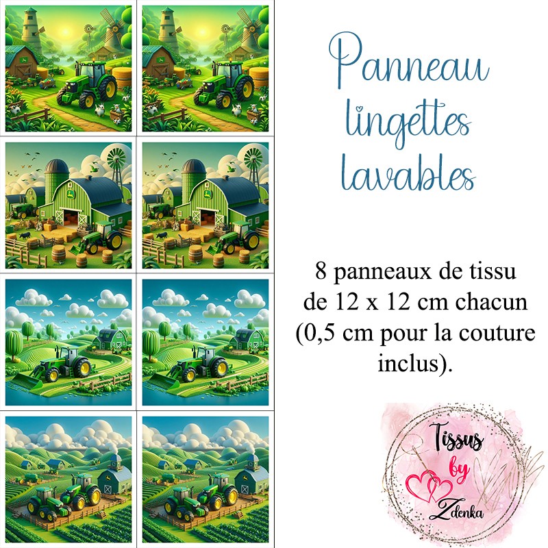 Panneau tissu pour lingettes lavables Tracteurs à la Ferme