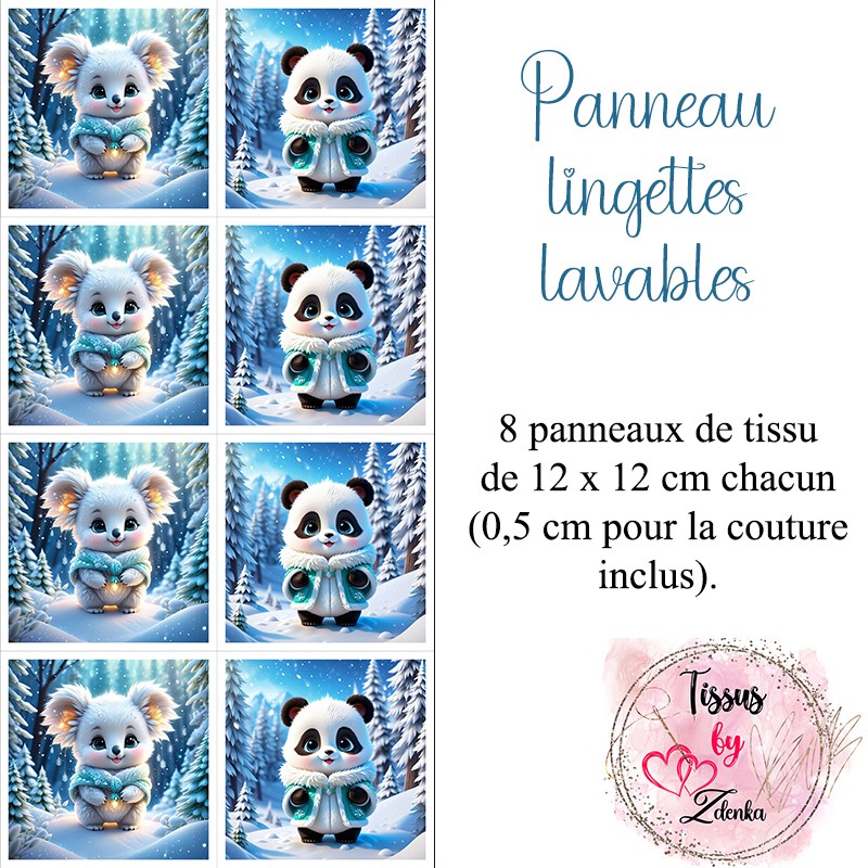 Précommande Panneau tissu pour lingettes Douce Hiver Panda & Koala (fin octobre)